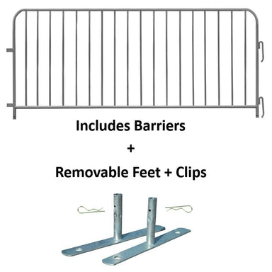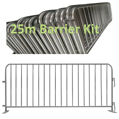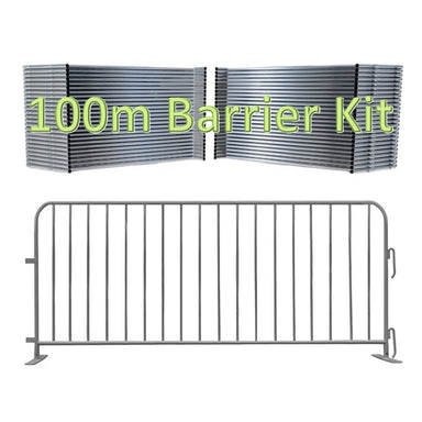 100m Crowd Control Safety Pedestrian Barrier Kit Galvanised Each 100m barrier bundle includes: 44 off x galvanised barriers (11kg each, 2.3m wide ...
