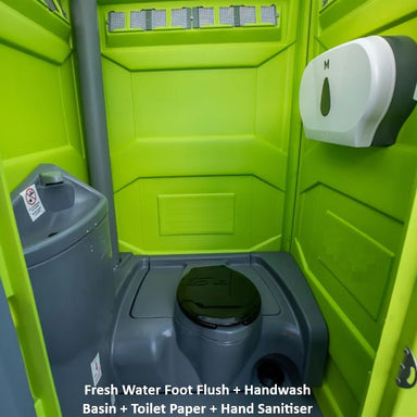 Portable Toilet Rental (with foot flush + urinal) A reliable, hygienic and convenient fresh water flush portable toilet solution for construction s...